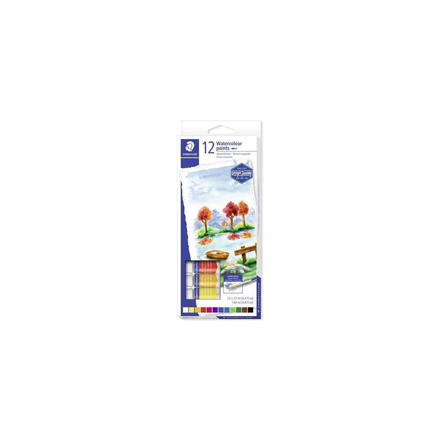 Akvarell festék, tubusos, STAEDTLER „8880”, 12 különböző szín