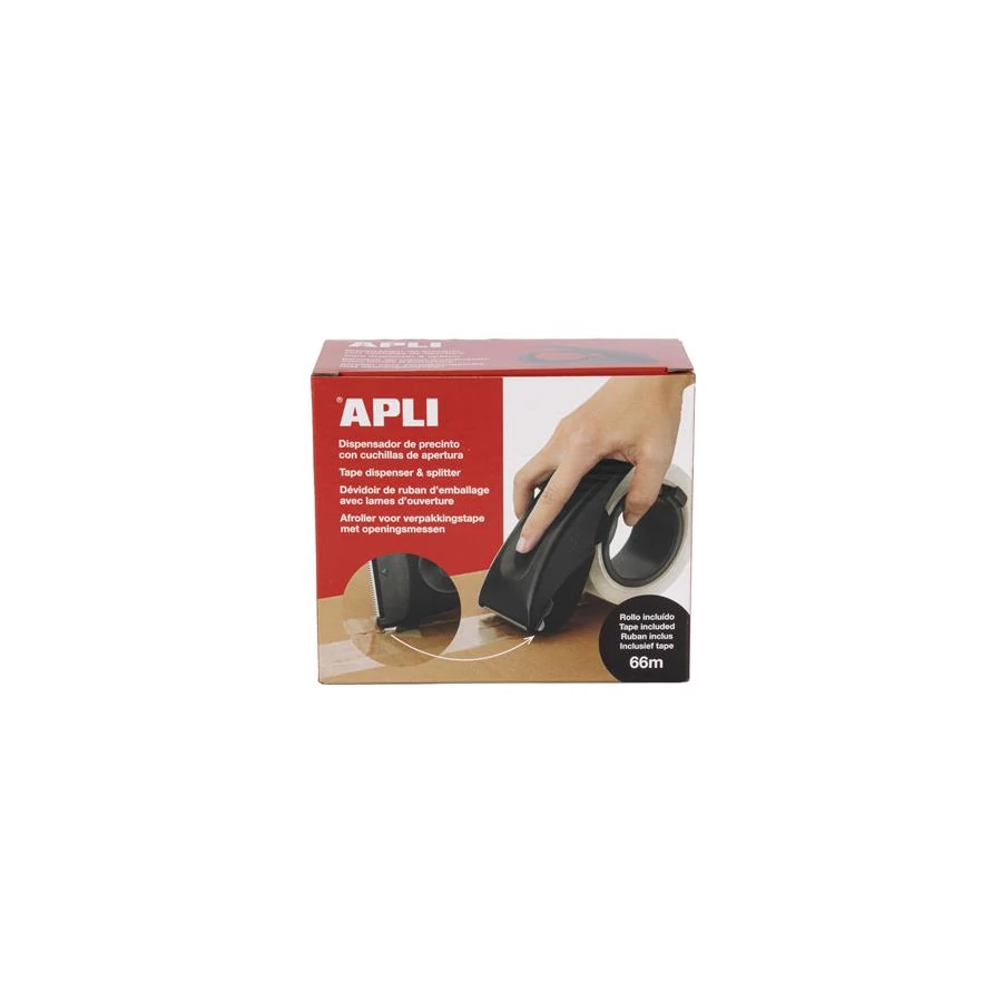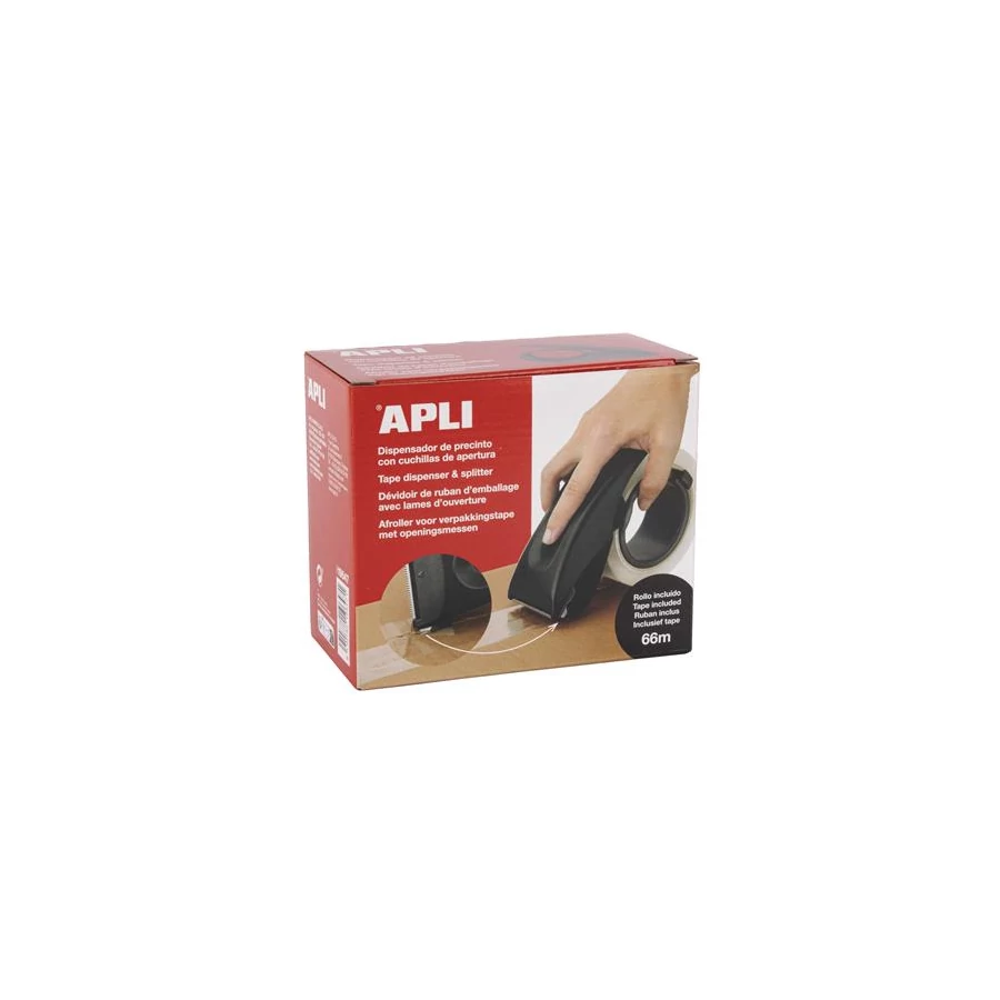 Csomagolószalag adagoló, beépített pengével, csomagolószalaggal, APLI, fekete