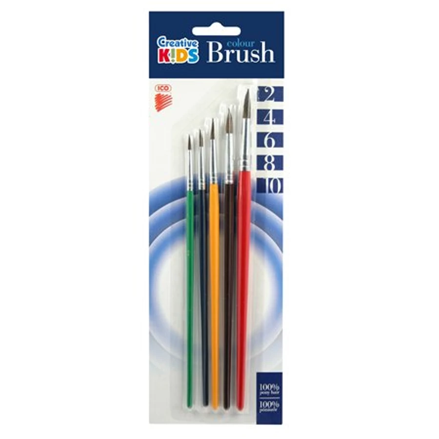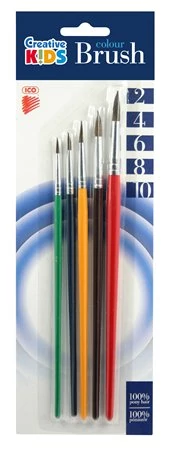 Ecsetkészlet, no. 2-4-6-8-10, fa, ICO "Creative Kids", 5db/bliszt