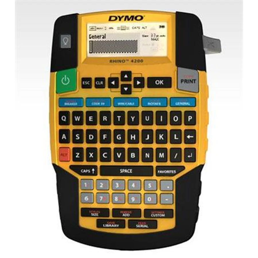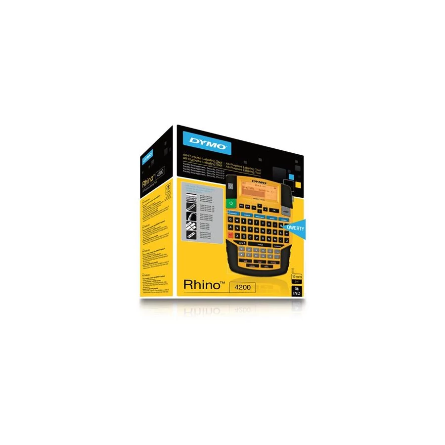 A Dymo Rhino egyérintéses gyorsgombokkal és előre programozott könyvtárral rendelkező elektromos feliratozógép. -gyors szövegbevitel a QWERTY billentyűzet és az egyérintéses gyorsbillentyűk segítségével -szabadalmaztatott gyorsbillentyűk a vezeték- és kábelkötegek, zászlócímkék, Code 39 és Code 128 vonalkódok, rögzített hosszúságú, általános és modulcímkék kialakításához és formázásához -hőnyomtatási technológiával nyomtat,nincs szükség tintára vagy festékpatronra ezzel is kímélve környezetünket -6, 9, 12 és 19 mm széles, ipari erősségű címkéket nyomtat -a "Kedvencek" billentyűvel egyetlen érintéssel hozzáférhetők a leggyakrabban használt címkék, szimbólumok és kifejezések -az "Egyéni" billentyűvel elkerülheti a lépések ismétlését - az egyéni címkeformátumok beállításait szerkesztheti és elmentheti -előre beprogramozott könyvtár: 150 biztonsági, villamossági, profi audiovizuális és létesítménykezelési szimbólummal és kifejezéssel -a beépített gumiütközők megvédik a véletlen leejtések és leesések okozta sérülésektől -a nagy, háttérmegvilágítású kijelző könnyen olvasható, még rosszul megvilágított helyeken is -autom.mentés/ autom. kikapcsolás - hosszabb akku-élettartam, a munka elvesztése nélkül -DYMO D1 és Rhino szalagokkal működik -6 db AA elemmel (nem tartozék) vagy lítium-ion akkumulátorral (nem tarozék) működik -csomag tartalma: Rhino 4200 nyomtató, 1 db 12 mm-es fehér PVC szalag, útmutató -garancia: 1 év +1 évhez itt lehet regisztrálni a gépet:
