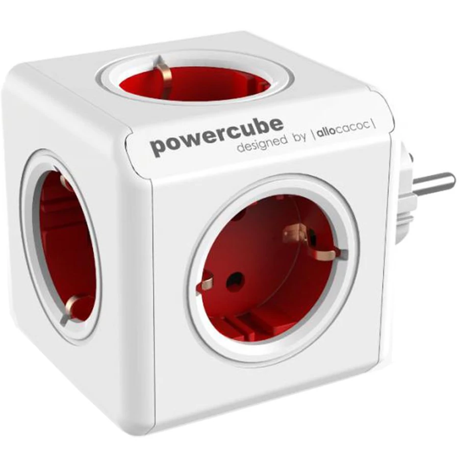 Elosztó, 5 aljzat, ALLOCACOC "PowerCube Original DE", fehér-piros