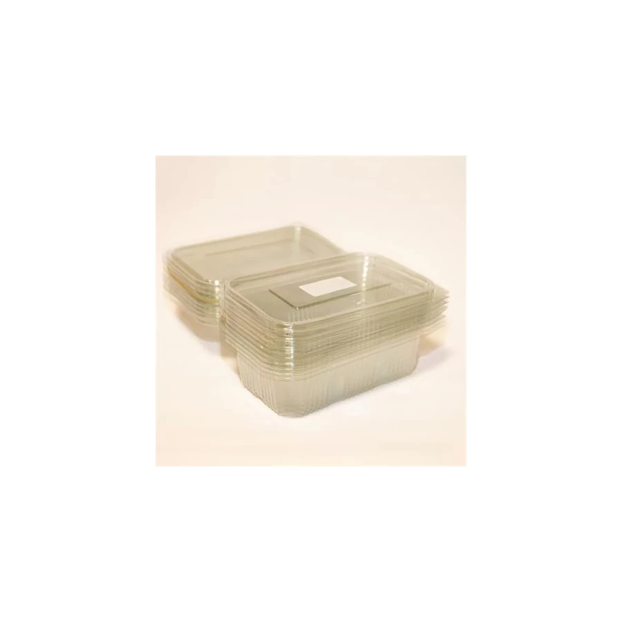 Ételtároló doboz, egybefedeles, újrahasznosított műanyag, szögletes, 750 ml, 100 db, "Party", víztiszta