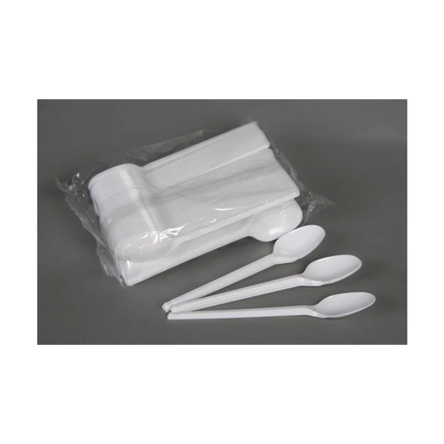 Fehér, műanyag eldobható kanál, kerti partik, büfék és fesztiválok elengedhetetlen kelléke.