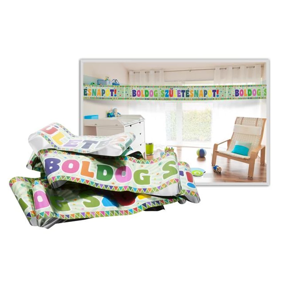 Felirat, fólia, "Boldog születésnapot", zászlós