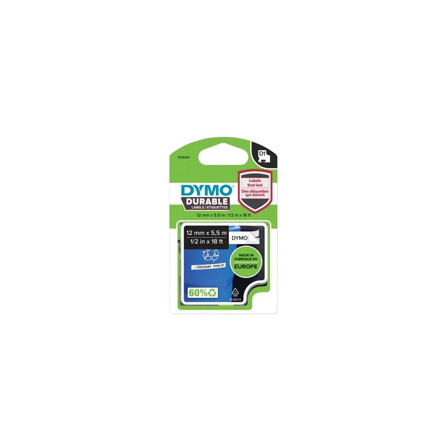 Feliratozógép szalag, 12 mm x 5,5 m, tartós, DYMO "D1", fehér-fekete