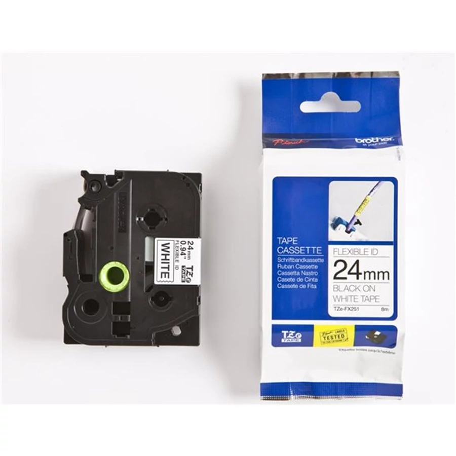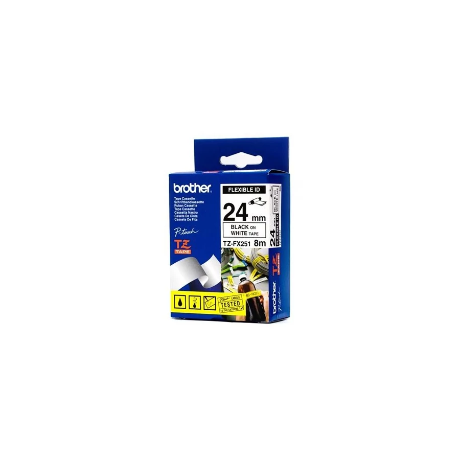 Feliratozógép szalag, flexibilis ID, 24 mm x 8 m, BROTHER, "TZe-FX251" fehér-fekete