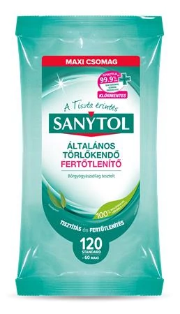Fertőtlenítő törlőkendő SANYTOL 120 darabos