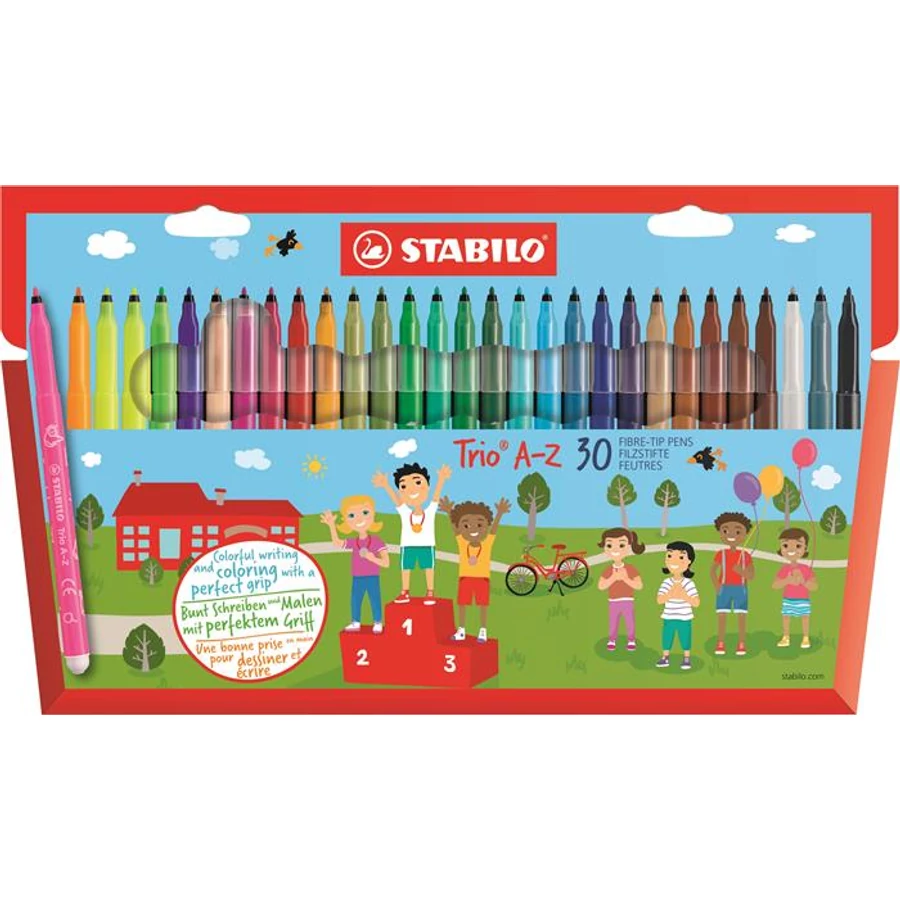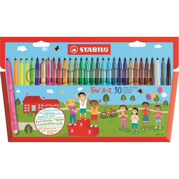 Filctoll készlet, 0,7 mm, STABILO "Trio A-Z", 30 különböző szín