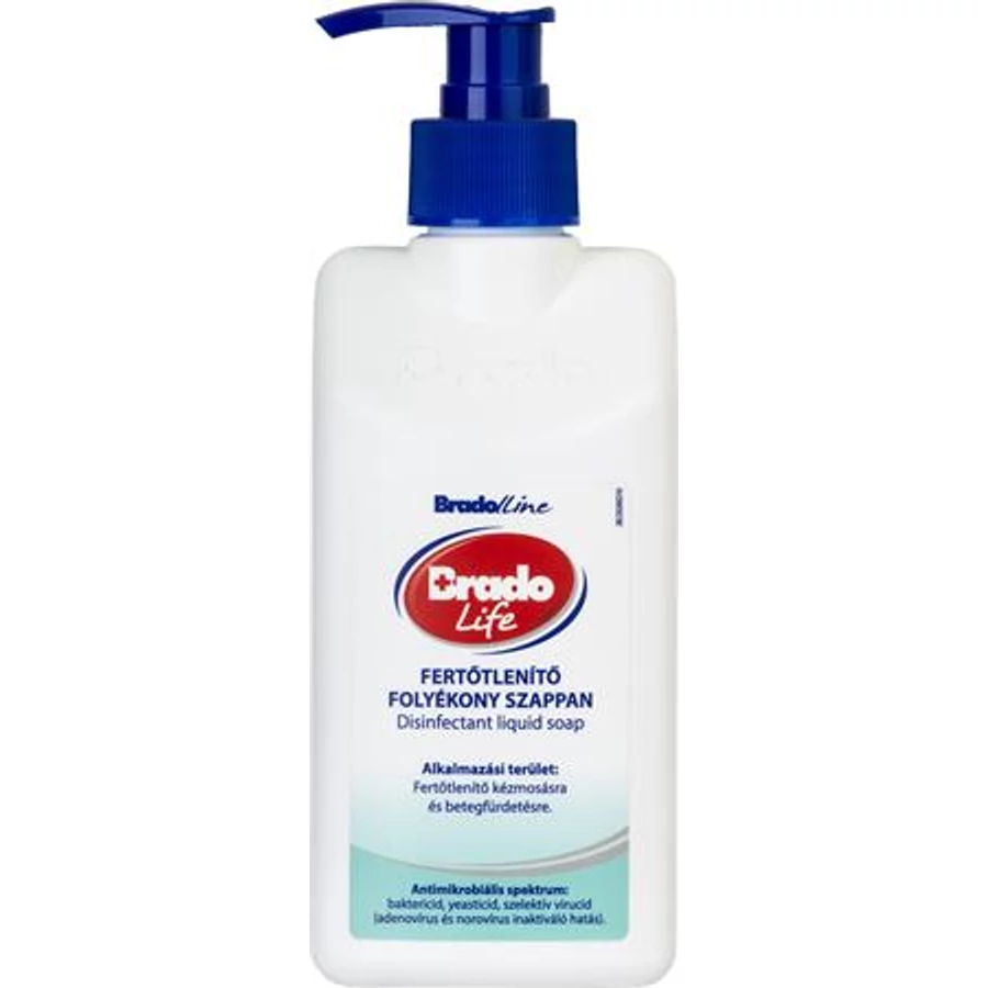 A Bradolife fertőtlenítő folyékony szappan kiválóan alkalmas bőrének fertőtlenítésére otthoni körülmények között is. Használható betegfürdetésre és fertőtlenítő kézmosásra. Baktericid, yeasticid, szelektív virucid (adenovírus és norovírus inaktiváló hatás).