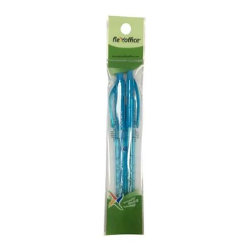 Golyóstoll, 0,25 mm, nyomógombos, 2 db/bliszter, FLEXOFFICE "Jonat", kék