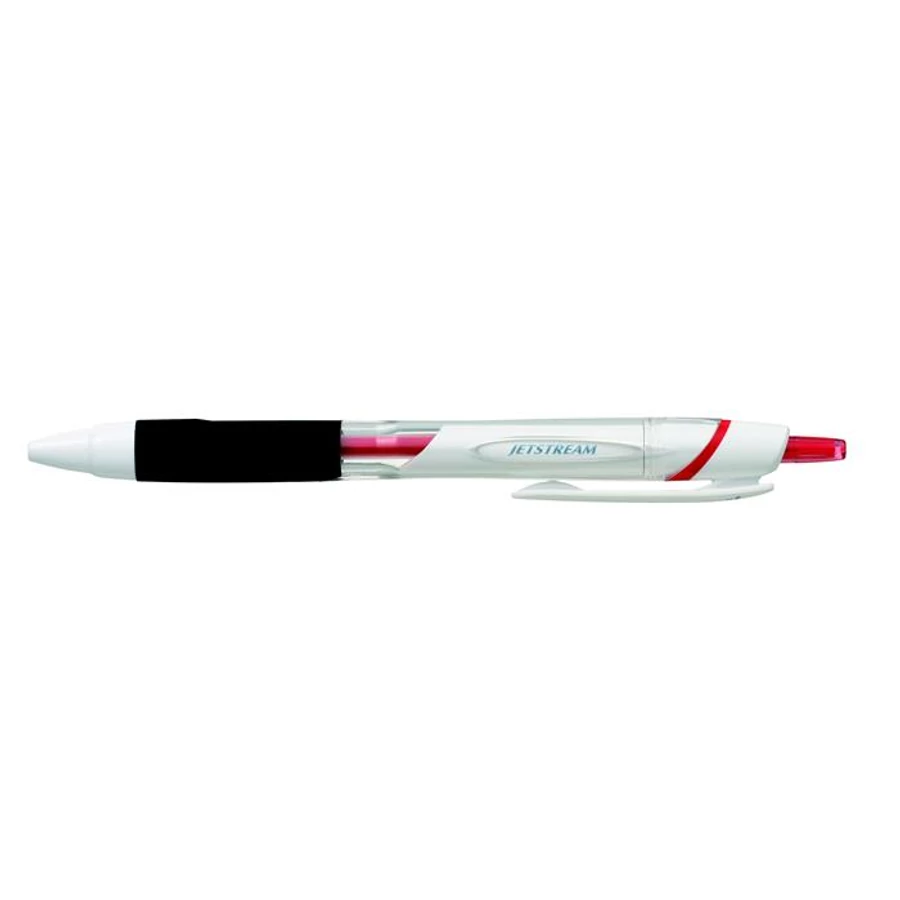Golyóstoll, 0,35 mm, nyomógombos, fehér tolltest, UNI "SXN-155 Jetstream", piros