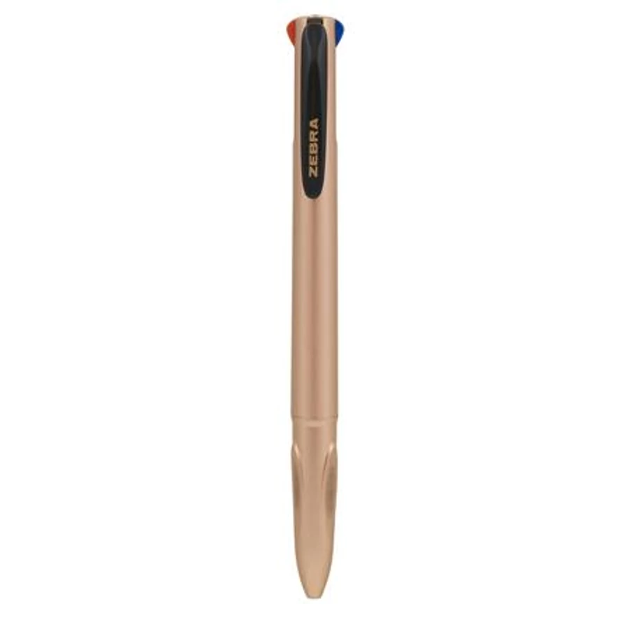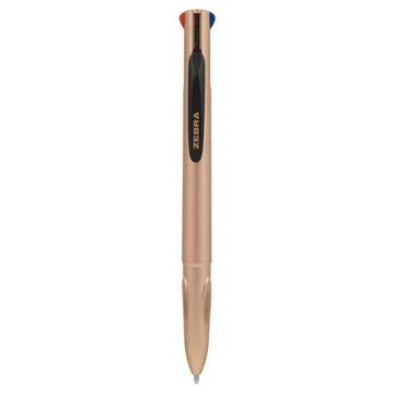 Golyóstoll, 0,37 mm, nyomógombos, négyszínű, ZEBRA "Smooth", rose gold