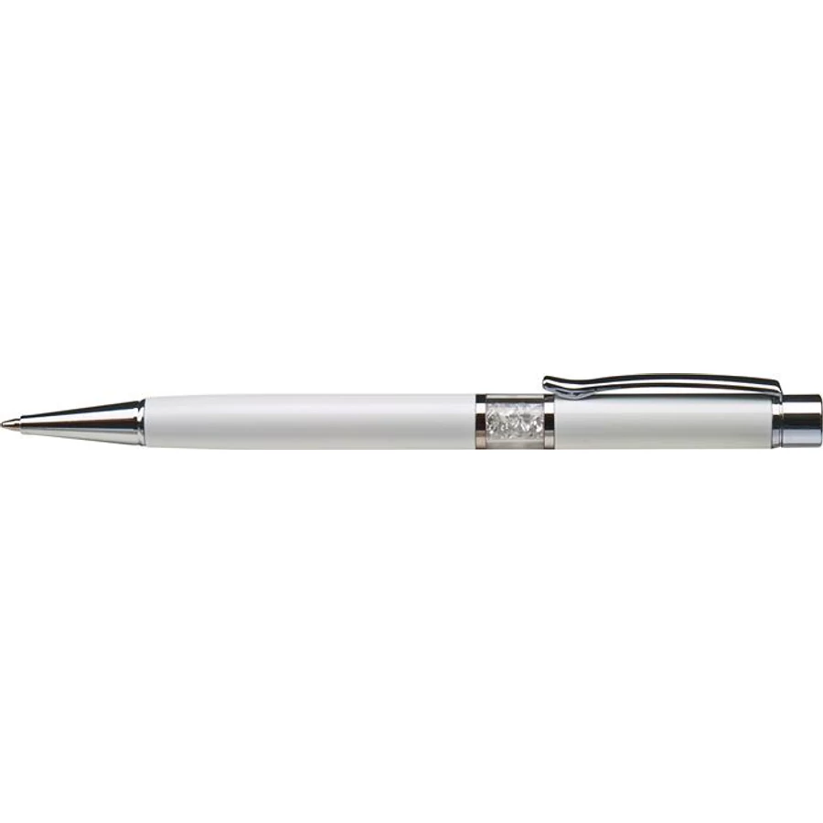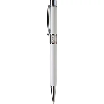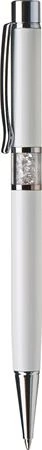 Golyóstoll, fehér, középen fehér SWAROVSKI® kristállyal töltve, 14cm, ART CRYSTELLA®