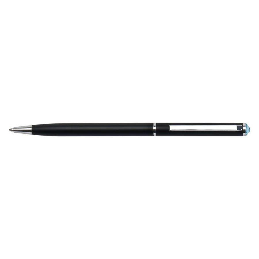 Golyóstoll, fekete "SLIM", aquakék SWAROVSKI® kristállyal, 13 cm, ART CRYSTELLA®