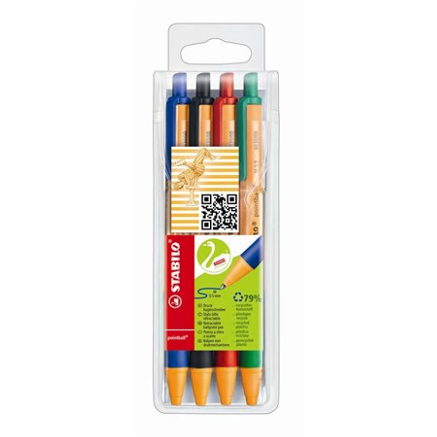 Golyóstoll készlet, 0,5 mm, nyomógombos, STABILO "Pointball", 4 különböző szín
