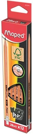 Grafitceruza radírral, 2B, háromszögletű, MAPED "Black`Peps", 12db/doboz
