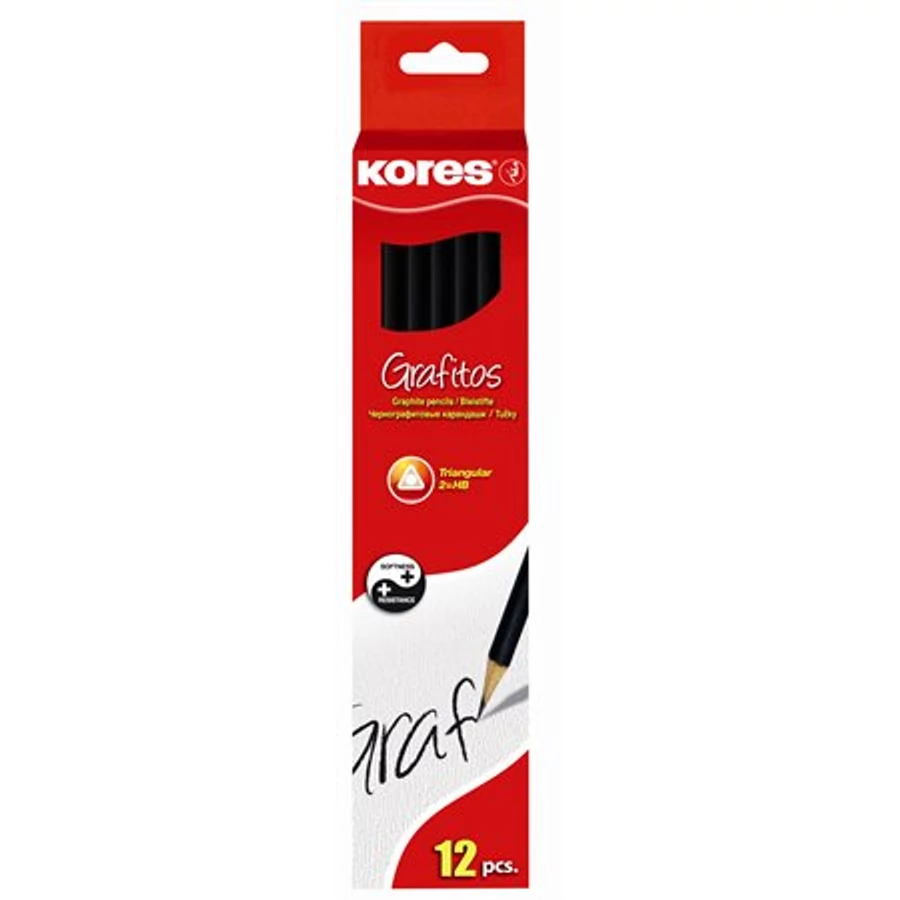 Grafitceruza radírral, HB, háromszögletű, KORES