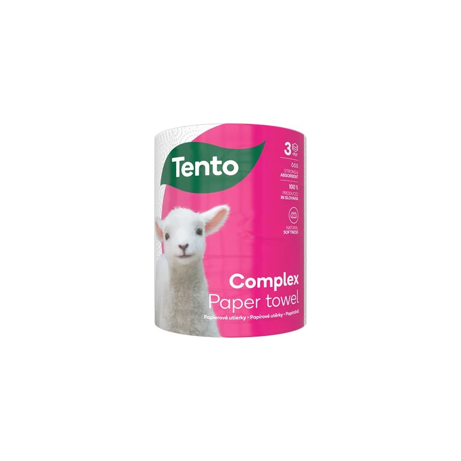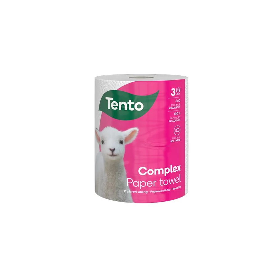 Az új Tento Complex papírtörlő egy innovatív termék melyben 1 rétegű ipari törlőkendő és 2 rétegű papírtörlő sikeresen ötvöződik. Az erős, kék réteg kiválóan eltávolít bármilyen szennyeződést. A két fehér papírréteg szivacshoz hasonló nedvszívó réteg, mely felszárítja és fényesíti a felületet.