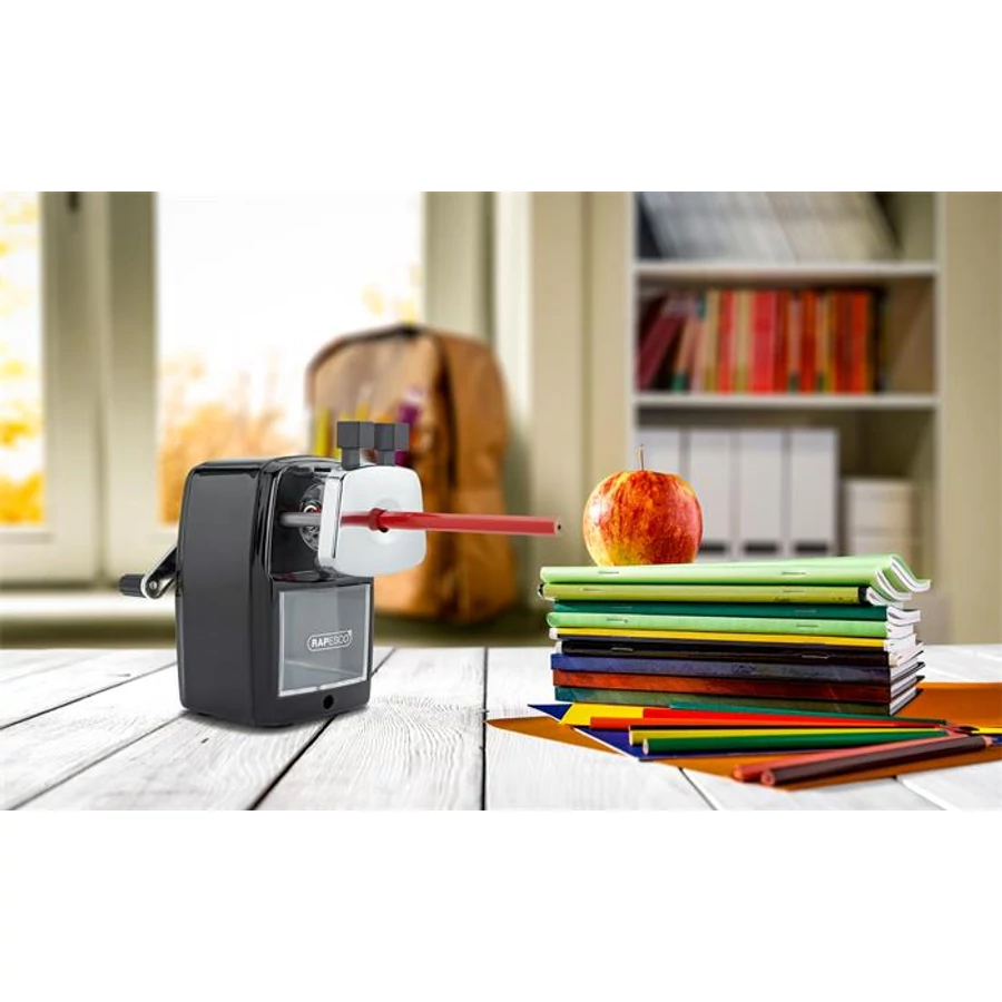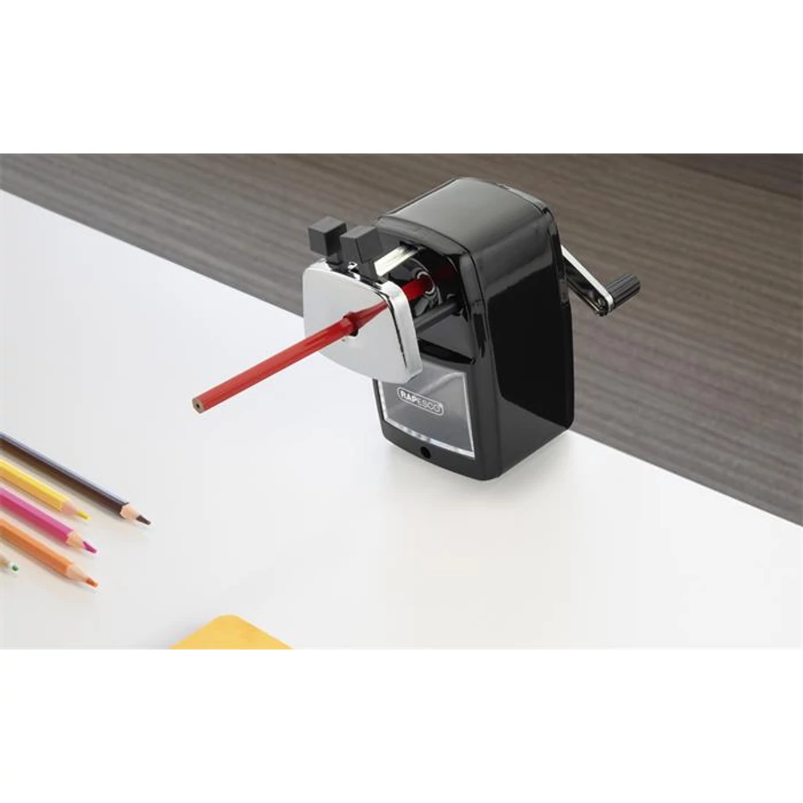 A Rapesco 74 asztali ceruzahegyezője stílusos, rendkívül funkcionális hegyező, amely számos funkcióval rendelkezik