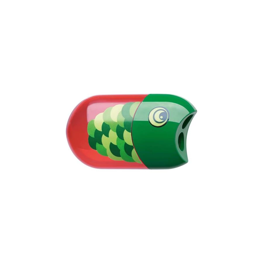 Hegyező és radír, kétlyukú, tartályos, FABER-CASTELL, hal minta