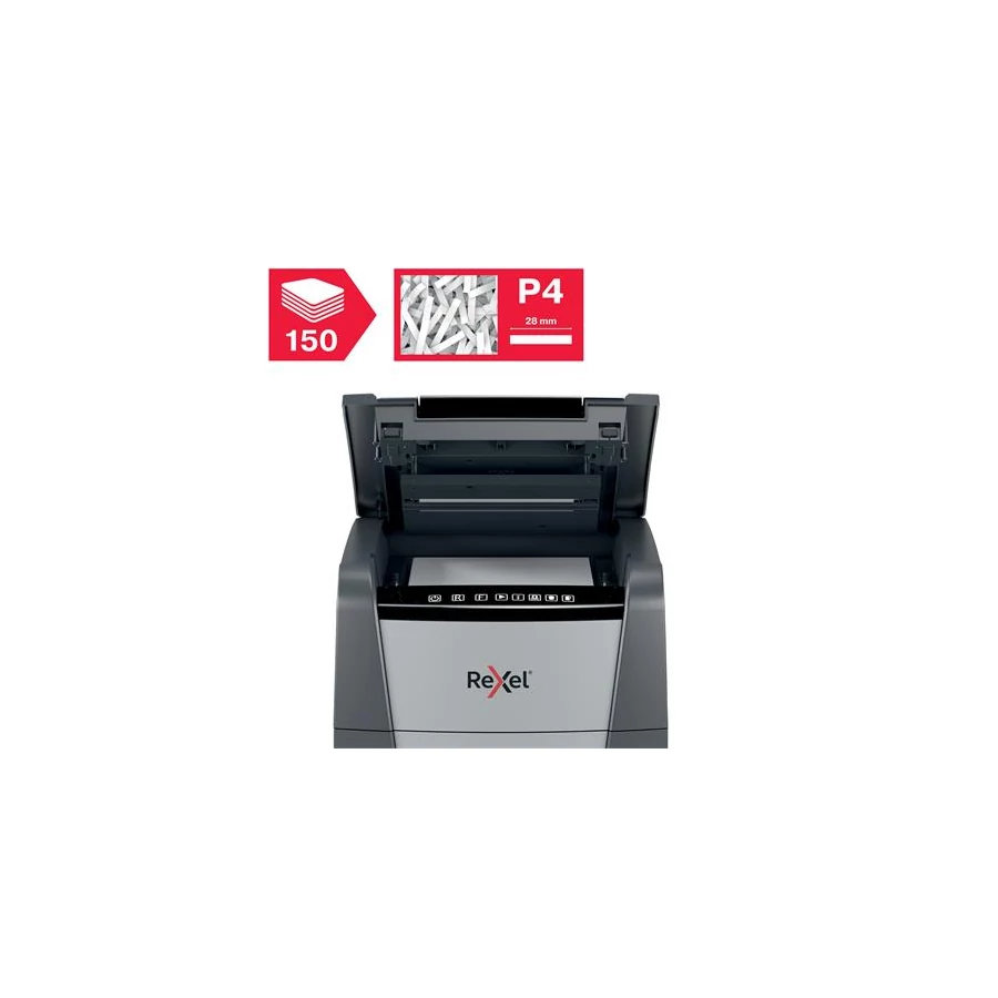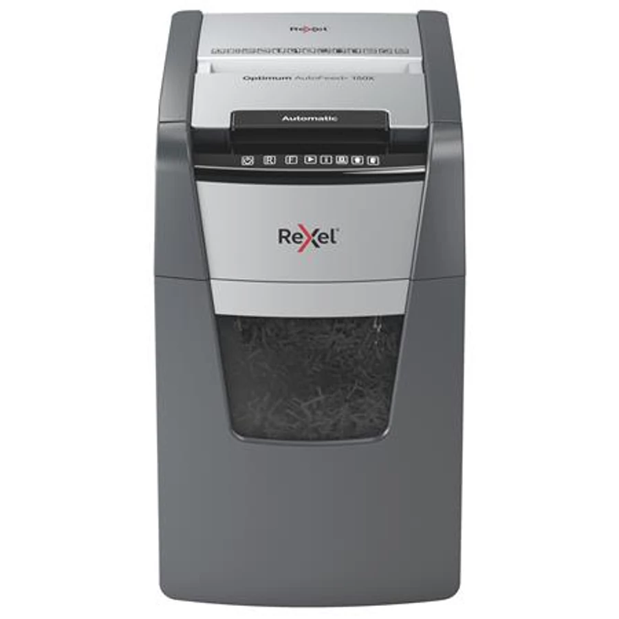 Iratmegsemmisítő, konfetti, 150 lap, REXEL, "Optimum AutoFeed+ 150X"