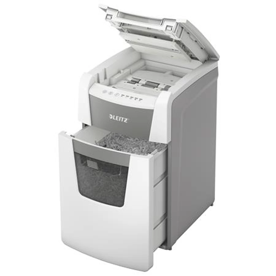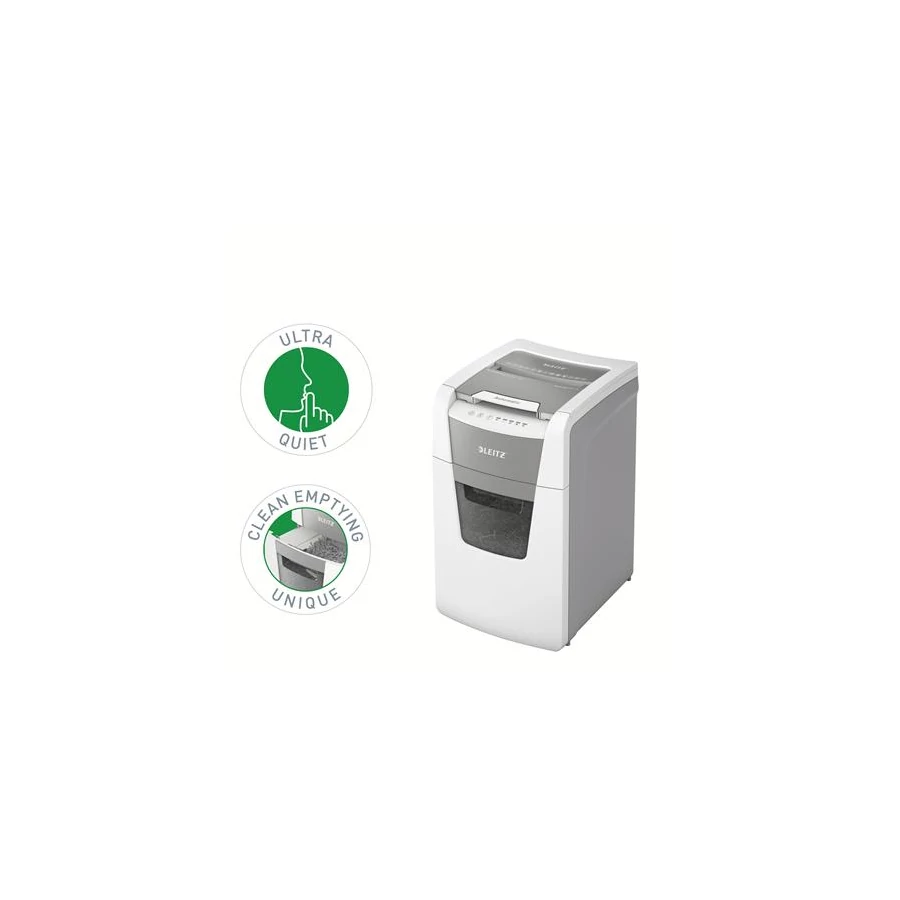Teljesen automata Leitz iratmegsemmisítő egyedülálló, tiszta ürítést biztosító funkcióval.