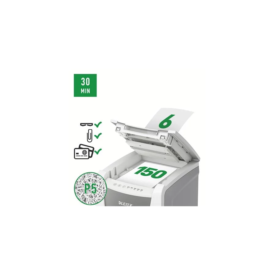 Iratmegsemmisítő, mikrokonfetti, 150 lap, LEITZ "IQ AutoFeed Office 150 P5 Pro"