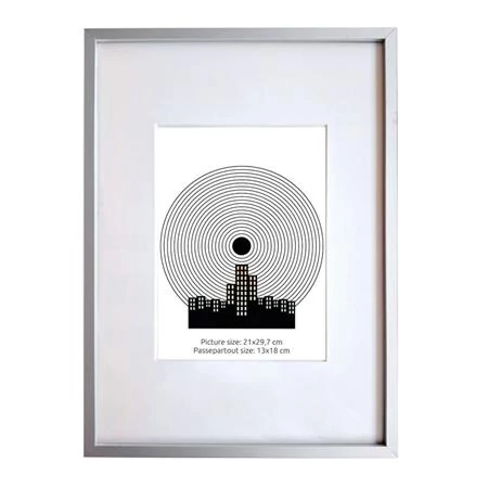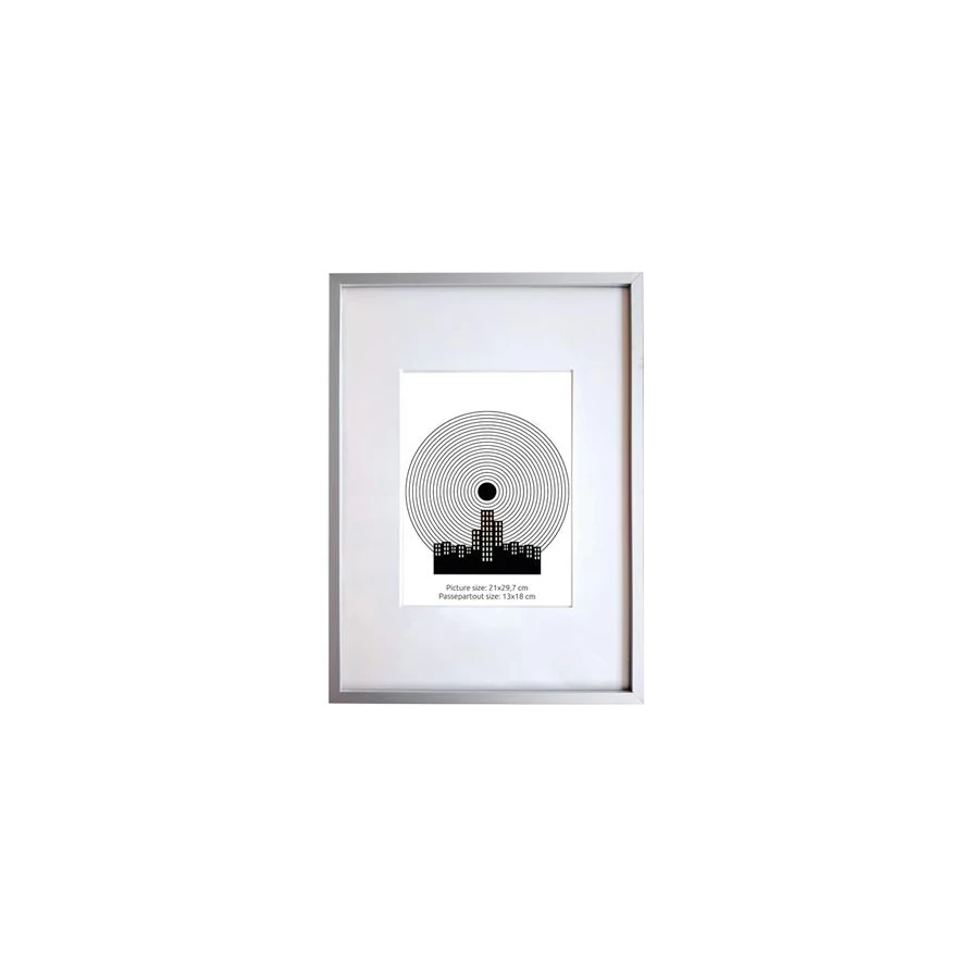 Ezüst színű aluminium képkeret paszpartuval.