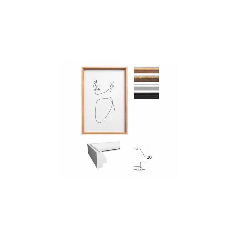 A "Silhouette" egy letisztult, modern és elegáns fából készült képkeret befelé lejtő profilal, fehér külső peremmel.