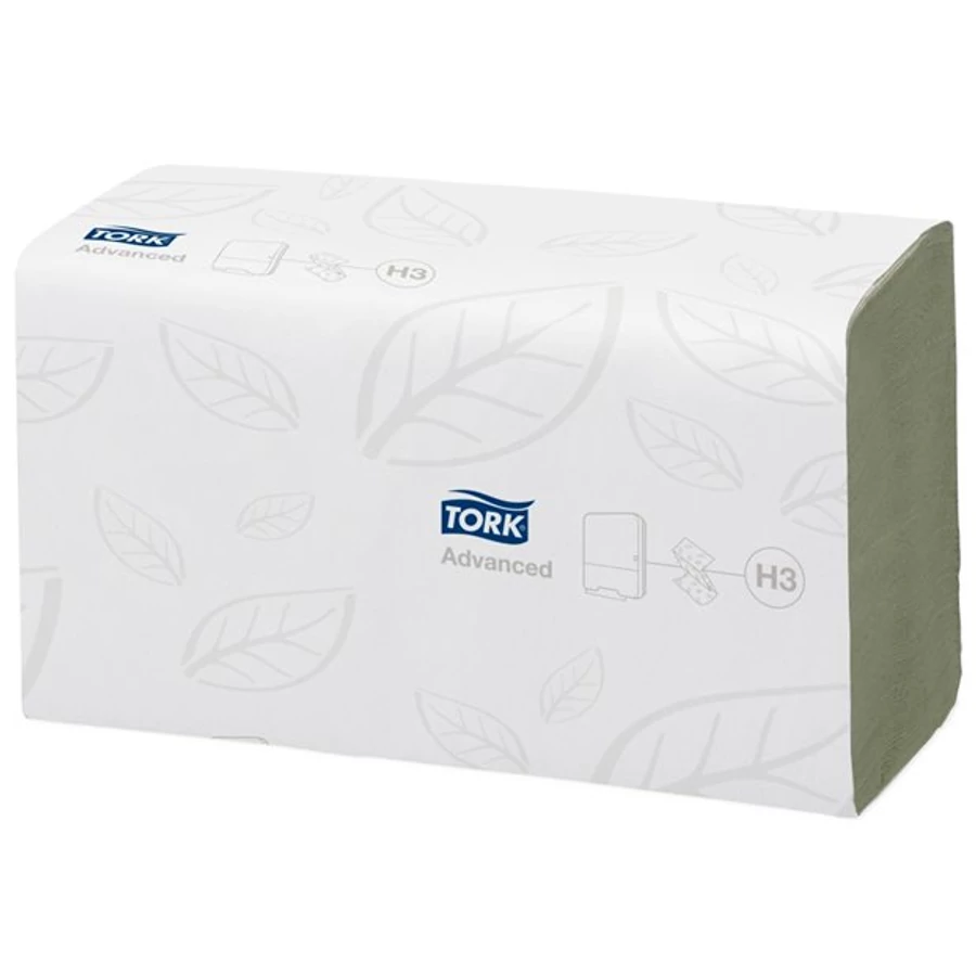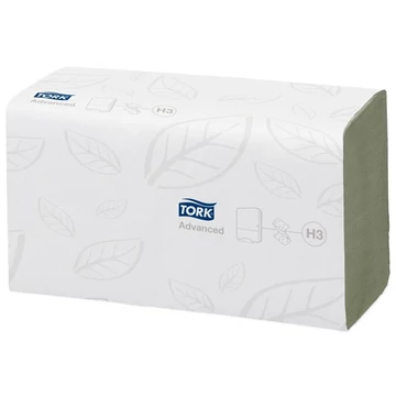 Kéztörlő, Z hajtás, 2rétegű, 15csom/krt, 250lap, H3 rendszer, Advanced, TORK "Singlefold", zöld