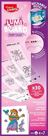 A Lumi Board utántöltő 30 új, a mesék univerzuma által arra ösztönzi a gyerekeket, hogy folytassák a világító rajzolás varázsát.
