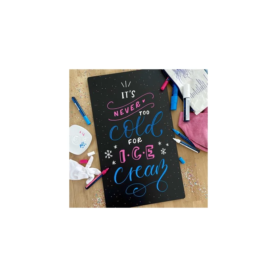 - minden sima felületre használható, pl. fekete és zöld táblákra, kirakatokra, figyelemfelkeltő táblákra