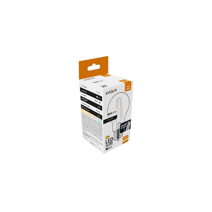LED izzó, filament, E27, gömb, A60, 7W, 806lm, 4000K, AVIDE