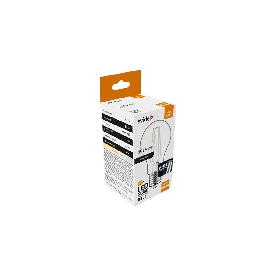 LED izzó, filament, E27, gömb, A60, 8,5W, 1055lm, 4000K, AVIDE