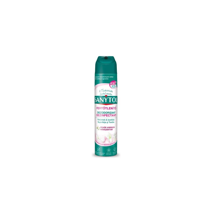 A Sanytol fertőtlenítő légfrissítő aerosol egyedülálló összetételének köszönhetően semlegesíti a kellemetlen szagokat és elpusztítja a felületeken és textíliákon megtelepedett kórokozók 99,9%-át.