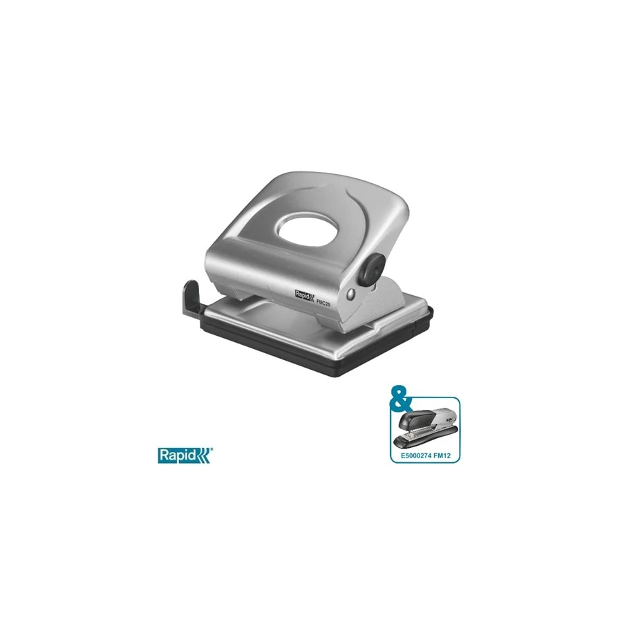 Lyukasztó, kétlyukú, 25 lap, fém, RAPID "FMC25", ezüstmetál