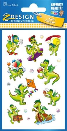 Matrica, papír, 3 ív, 76x120 mm, AVERY ZWECKFORM, "Z-Design No.54043", sárkányok