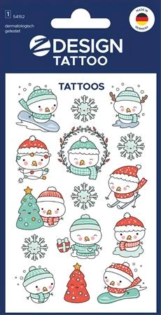 A tetoválás ideiglenes gyerektetoválásainkkal nagyon könnyű: egyszerűen vágja ki a kedvenc mintáját, távolítsa el az átlátszó fóliát, helyezze a bőrre, és nedves szivaccsal nyomja pár másodpercig. Végül hagyja jól megszáradni - így varázsolja csillogóvá a gyerekszemeket! Akár több tetoválást is felrakhat, mert ki tudna itt csak egy mellett dönteni? Ha azonban a vicces hóember inkább sellő vagy lovag szeretne lenni, az ideiglenes tetoválások bármilyen bőrolajjal könnyen és kíméletesen eltávolíthatóak. Most pedig néhány termékinformáció, amely nagyon fontos számunkra: A különösen magas minőségi színvonal rendkívül fontos számunkra. Tetoválásaink természetesen gyermekbiztosak*, különösen kíméletesek a bőrhöz, "nem karcolódnak", kiváló minőségűek, bőrgyógyászatilag teszteltek és külső tesztközpontok által rendszeresen szigorú ellenőrzéseknek vetik alá őket. Az ideiglenes gyerektetoválások megtévesztően valódinak tűnnek, derekasan ellenállnak a kézmosásnak és a víznek, és több napig tartó szórakozást nyújtanak. Jó szórakozást a tetováláshoz ;-)