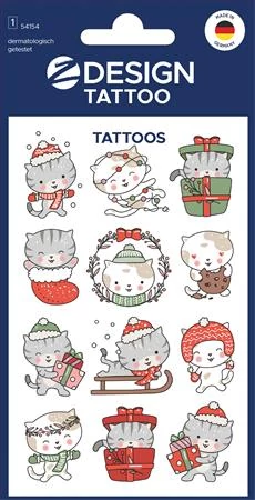 A tetoválás ideiglenes gyerektetoválásainkkal nagyon könnyű: egyszerűen vágja ki a kedvenc mintáját, távolítsa el az átlátszó fóliát, helyezze a bőrre, és nedves szivaccsal nyomja pár másodpercig. Végül hagyja jól megszáradni - így varázsolja csillogóvá a gyerekszemeket! Akár több tetoválást is felrakhat, mert ki tudna itt csak egy mellett dönteni? Ha azonban a karácsonyi cica inkább sellő vagy lovag szeretne lenni, az ideiglenes tetoválások bármilyen bőrolajjal könnyen és kíméletesen eltávolíthatóak. Most pedig néhány termékinformáció, amely nagyon fontos számunkra: A különösen magas minőségi színvonal rendkívül fontos számunkra. Tetoválásaink természetesen gyermekbiztosak*, különösen kíméletesek a bőrhöz, "nem karcolódnak", kiváló minőségűek, bőrgyógyászatilag teszteltek és külső tesztközpontok által rendszeresen szigorú ellenőrzéseknek vetik alá őket. Az ideiglenes gyerektetoválások megtévesztően valódinak tűnnek, derekasan ellenállnak a kézmosásnak és a víznek, és több napig tartó szórakozást nyújtanak. Jó szórakozást a tetováláshoz ;-)