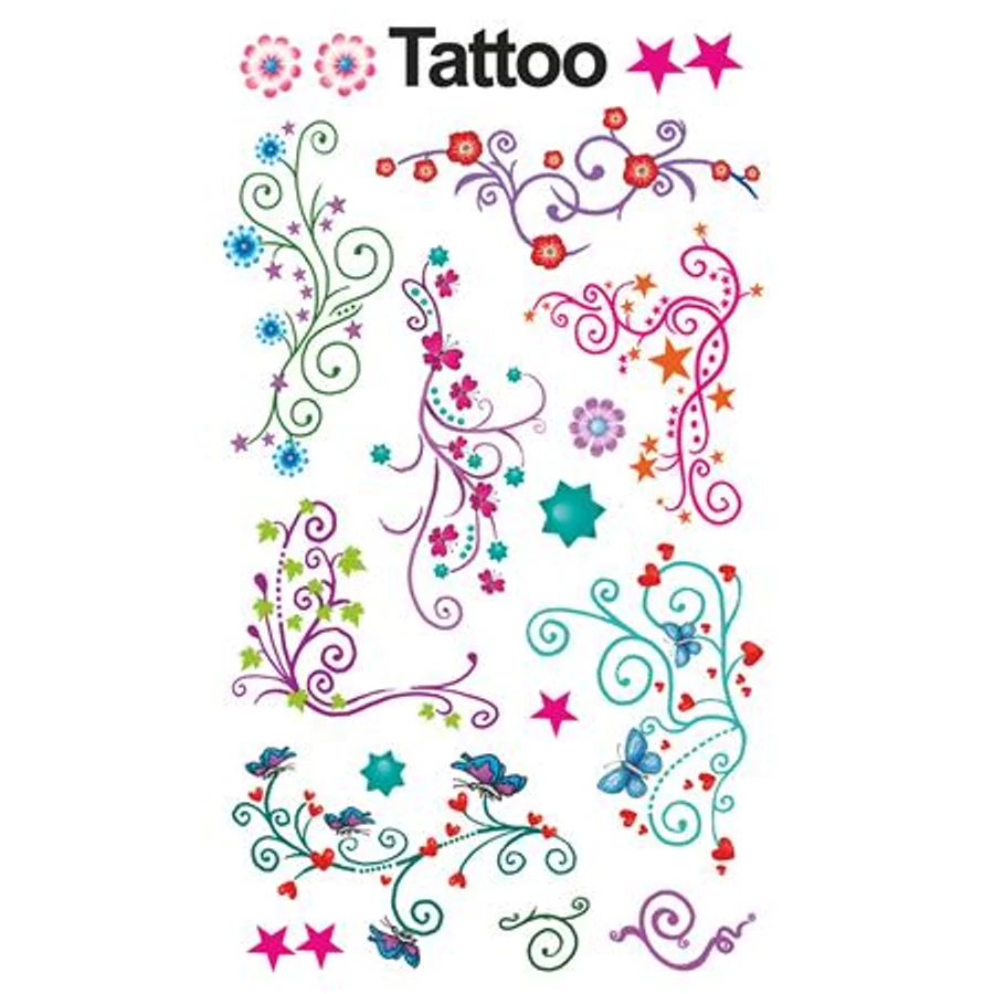 Minden hercegnőnek! Lepje meg ifjú hölgyét gyönyörű virágfüzér tetoválással, melyből többféle méret és színváltozat is létezik és amely arcon és karon is jól mutat. Tökéletes ifjú hölgyek számára!