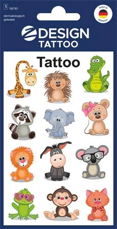 Matrica, tetoválás, 1 ív, 76x120 mm, AVERY ZWECKFORM, "Z-Design No.56761", állatok