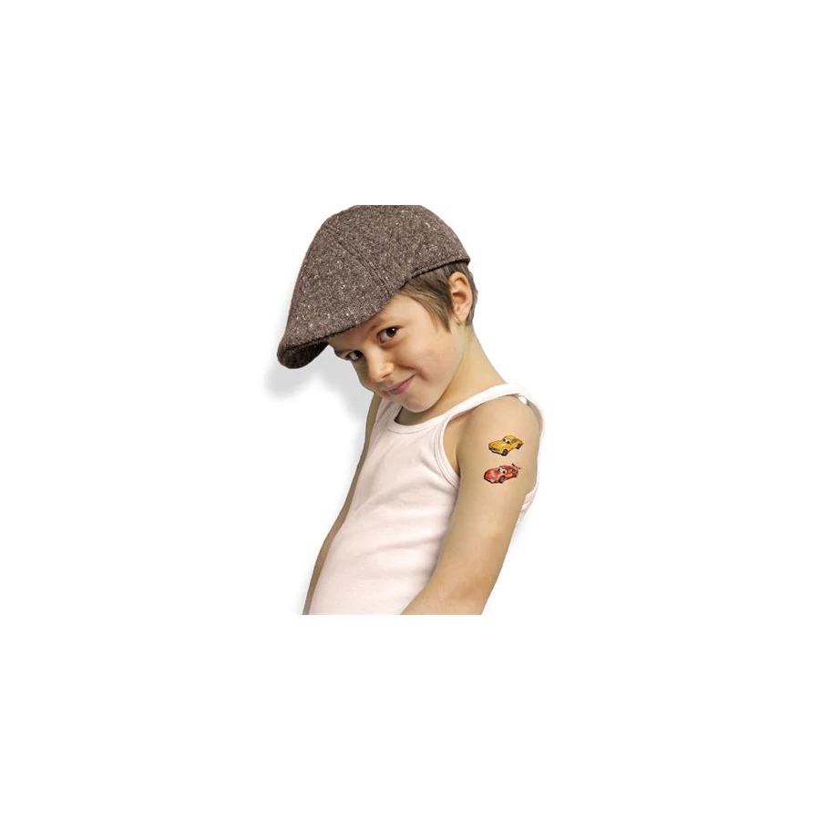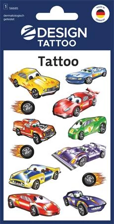 Autó tetoválás kis autóverseny-rajongóknak! Lepje meg gyermekeit nagyszerű tetoválásokkal, gyermekei imádni fogják a vagány autóversenyes tetoválást. Tökéletes ajándék, vagy apró meglepetés, amivel hazaérkezik, születésnapi partikra vagy egyszerűen arra, hogy a gyerekek játszanak. ?Az ideiglenes tetoválás vízálló, és megtévesztően valódinak tűnik. Egyszerűen vízzel kell felhelyezni, és kis olajjal könnyen eltávolítani. Természetesen a tetoválás csúcsminőségű, gyermekbiztos és dermatológiailag tesztelt és külső laboratóriumok által rendszeresen ellenőrzött. Élvezze saját tetováló stúdióját! ;-)