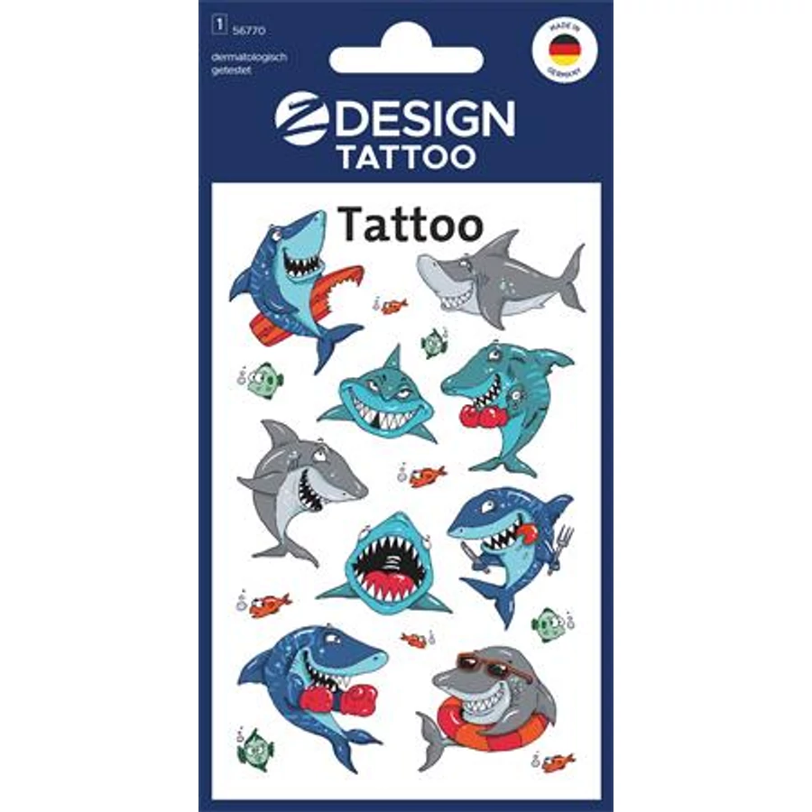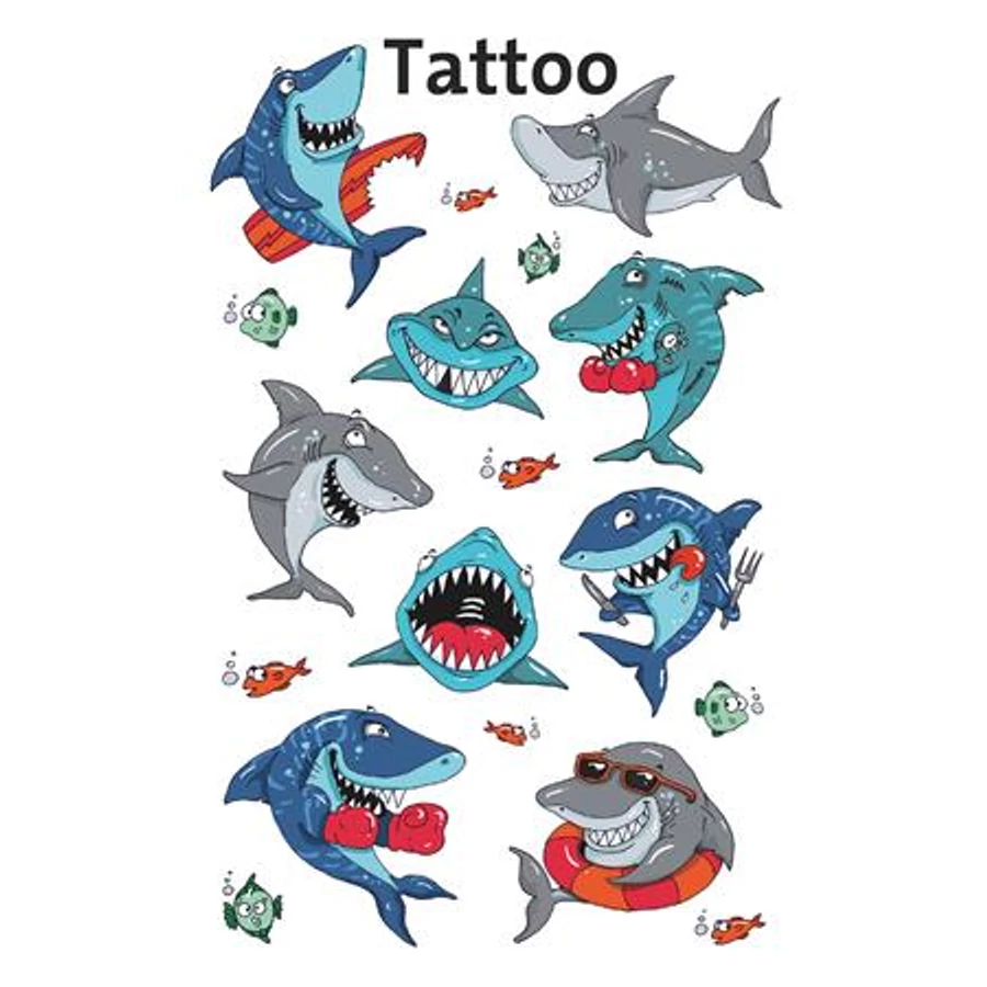 9 db Cápa tetoválás a varázslatos tengervilágból! Tökéletes ajándék, vagy apró meglepetés, amivel hazaérkezik, születésnapi partikra vagy egyszerűen arra, hogy a gyerekek játszanak.?Az ideiglenes tetoválás vízálló, és megtévesztően valódinak tűnik. Egyszerűen vízzel kell felhelyezni, és kis olajjal könnyen eltávolítani. Természetesen a tetoválás csúcsminőségű, gyermekbiztos és dermatológiailag tesztelt és külső laboratóriumok által rendszeresen ellenőrzött. Élvezze saját tetováló stúdióját!