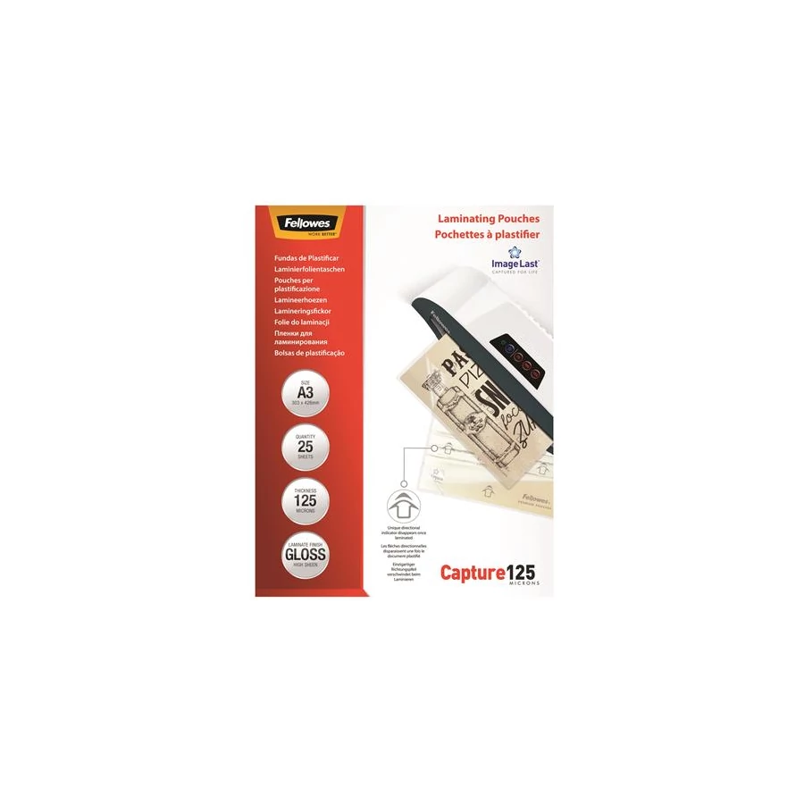 Meleglamináló fólia, 125 mikron, A3, fényes, 25 db, FELLOWES