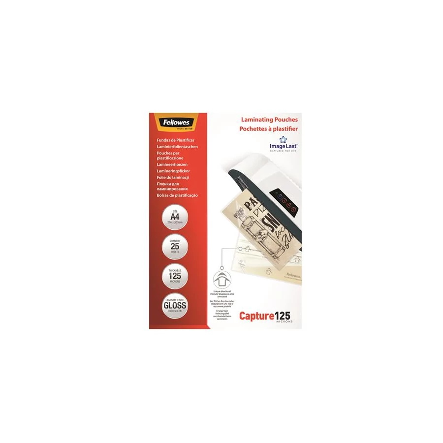 Meleglamináló fólia, 125 mikron, A4, fényes, 25 db, FELLOWES