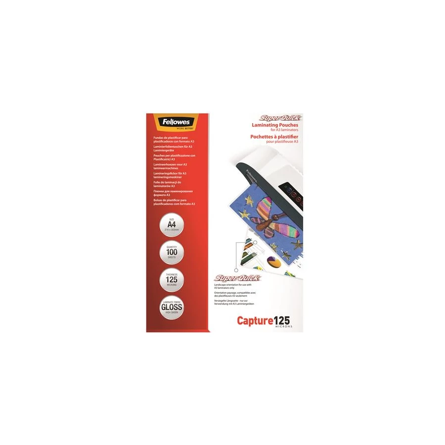 Meleglamináló fólia, 125 mikron, A4, SuperQuick, fényes, 100 db, FELLOWES