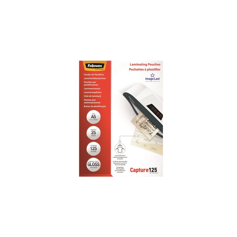 Meleglamináló fólia, 125 mikron, A5, fényes, 25 db, FELLOWES