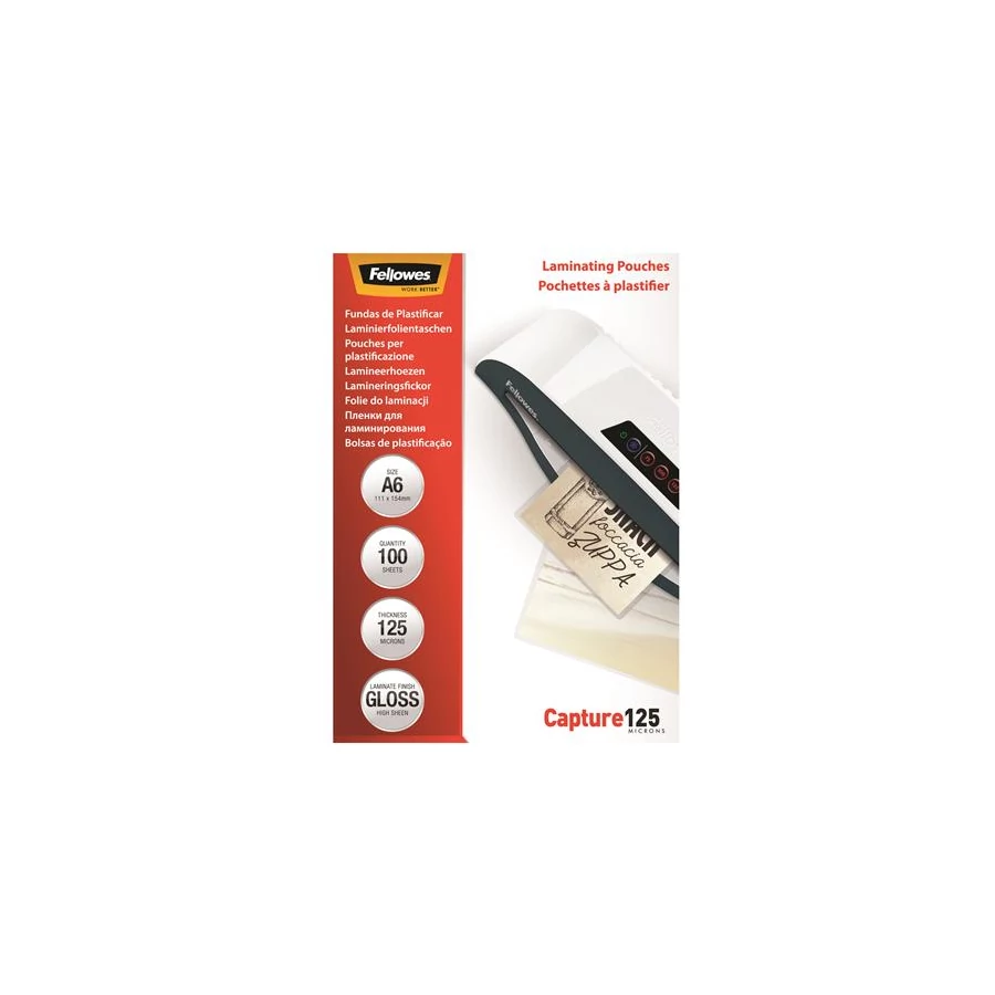 Meleglamináló fólia, 125 mikron, A6, fényes, 100 db, FELLOWES