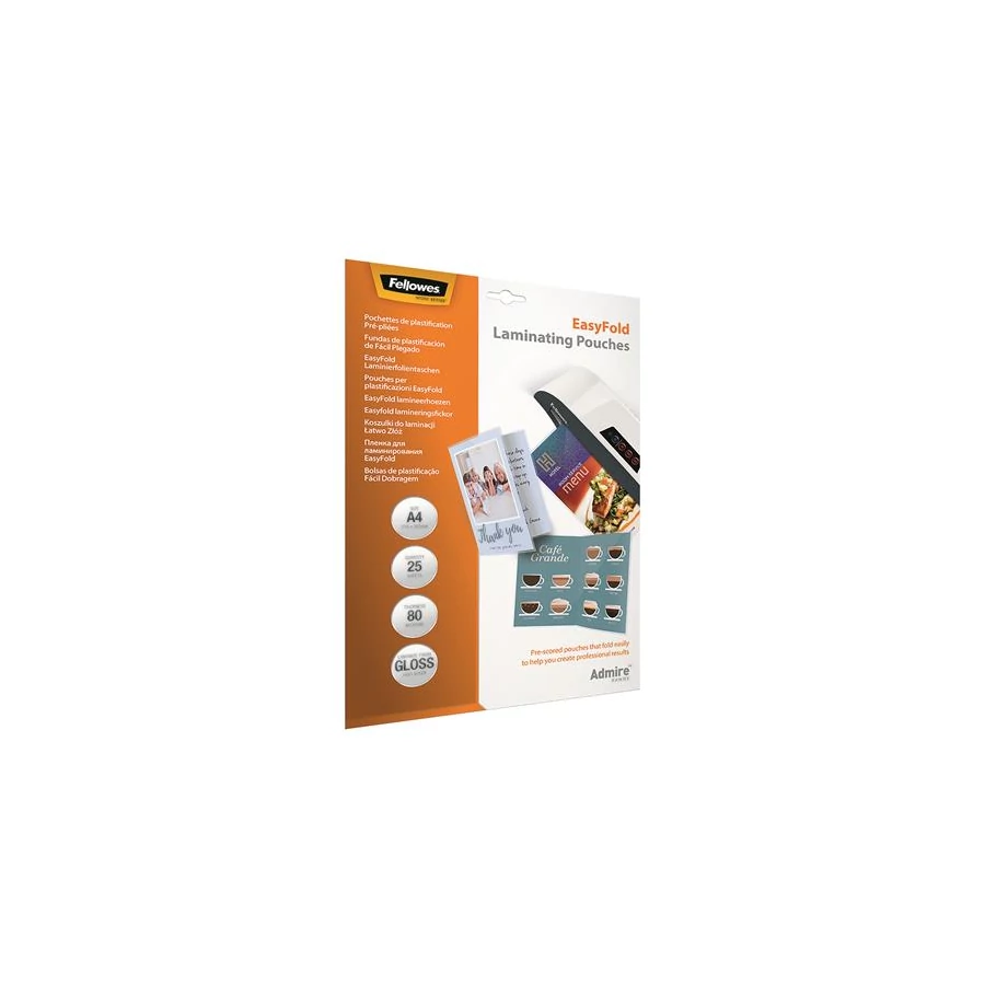Meleglamináló fólia, 80 mikron, A4, fényes, 25 db, FELLOWES "Admire Easyfold"
