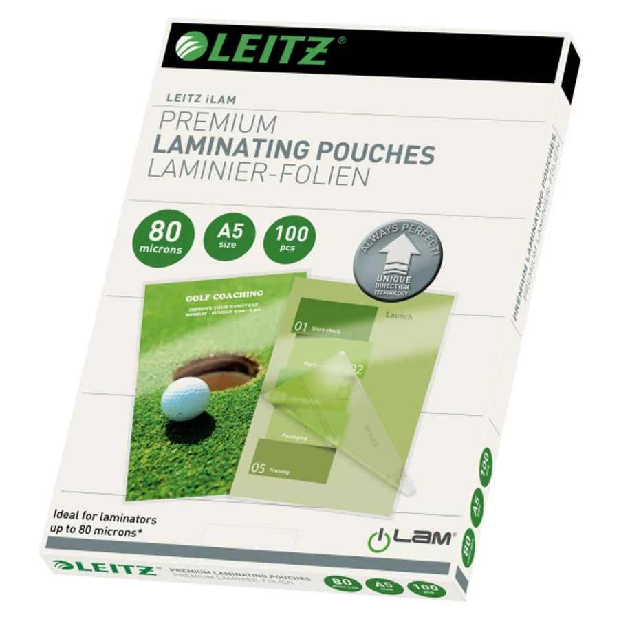 Meleglamináló fólia, 80mikron, A5, fényes, UDT technológiával, LEITZ "iLam", 100db/cs